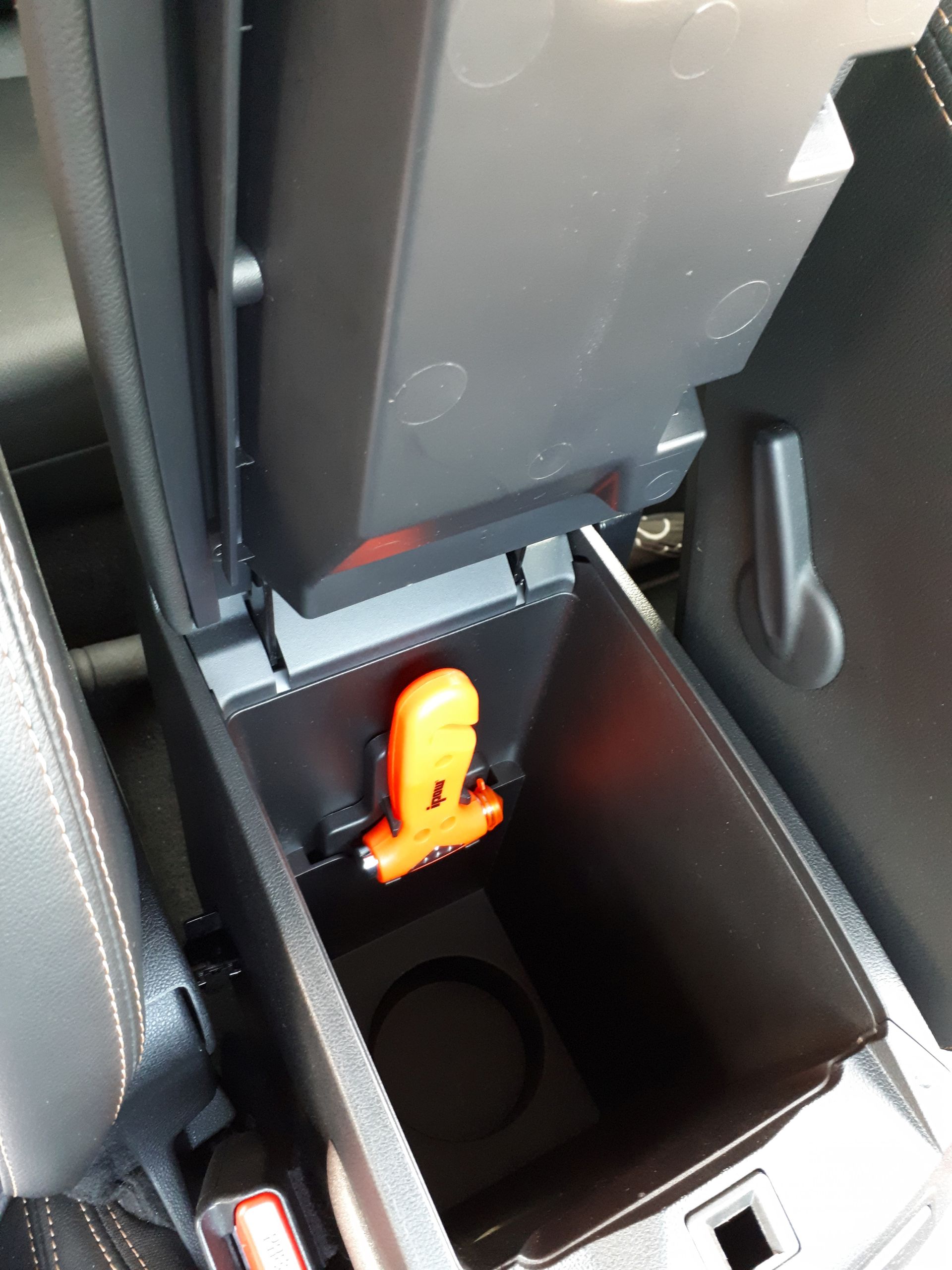 Kurzer Nothammer mit Gurtschneider für 4,25 EUR bei amazon, passt mit seiner Halterung in das Staufach der Mittelkonsole.