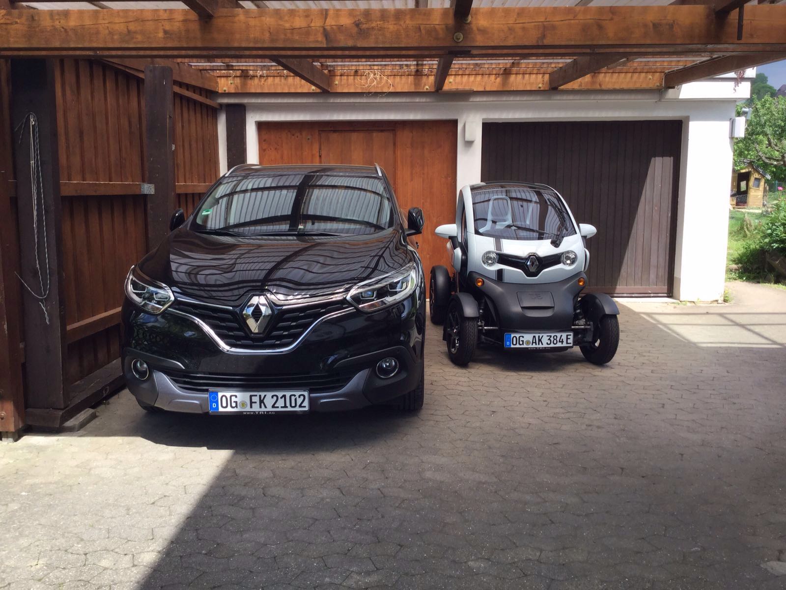 Wie es sich gehört Quatsch das ist der Twizy von meinen Vater. Er hat ihn sich gekauft um seinen fast Oldtimer zu schonen.